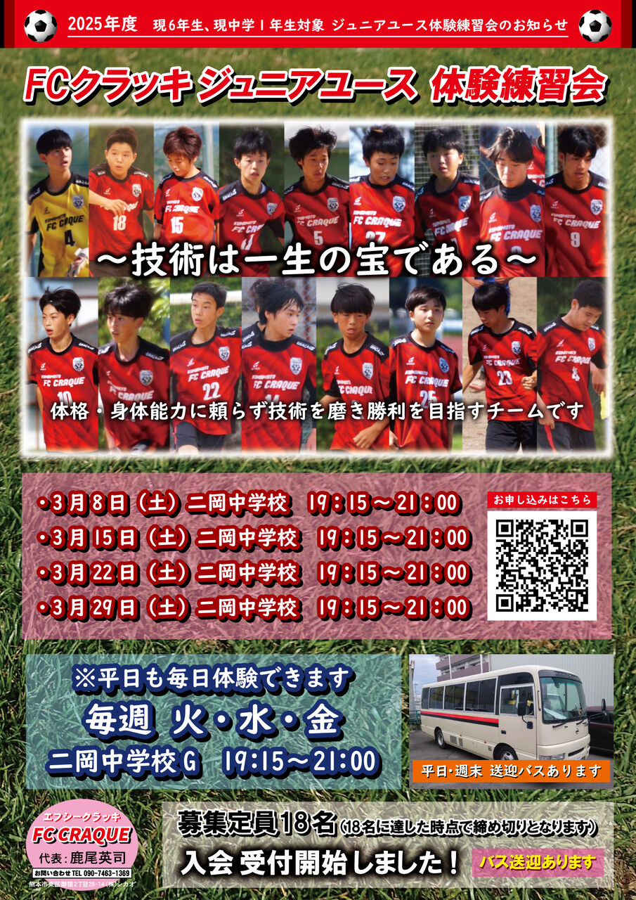 FCクラッキジュニアユース 無料体験会のお知らせ