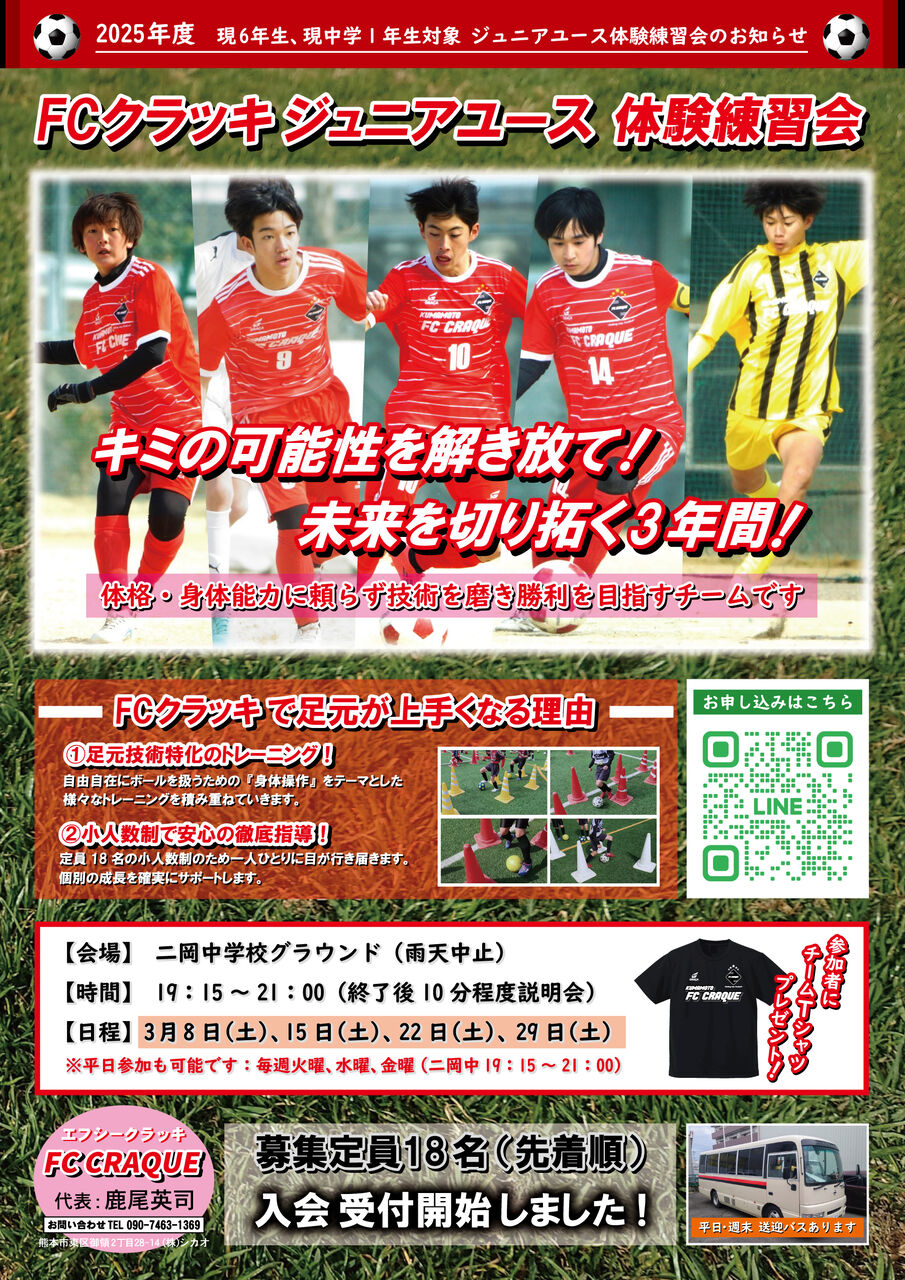 FCクラッキジュニアユース 無料体験会のお知らせ