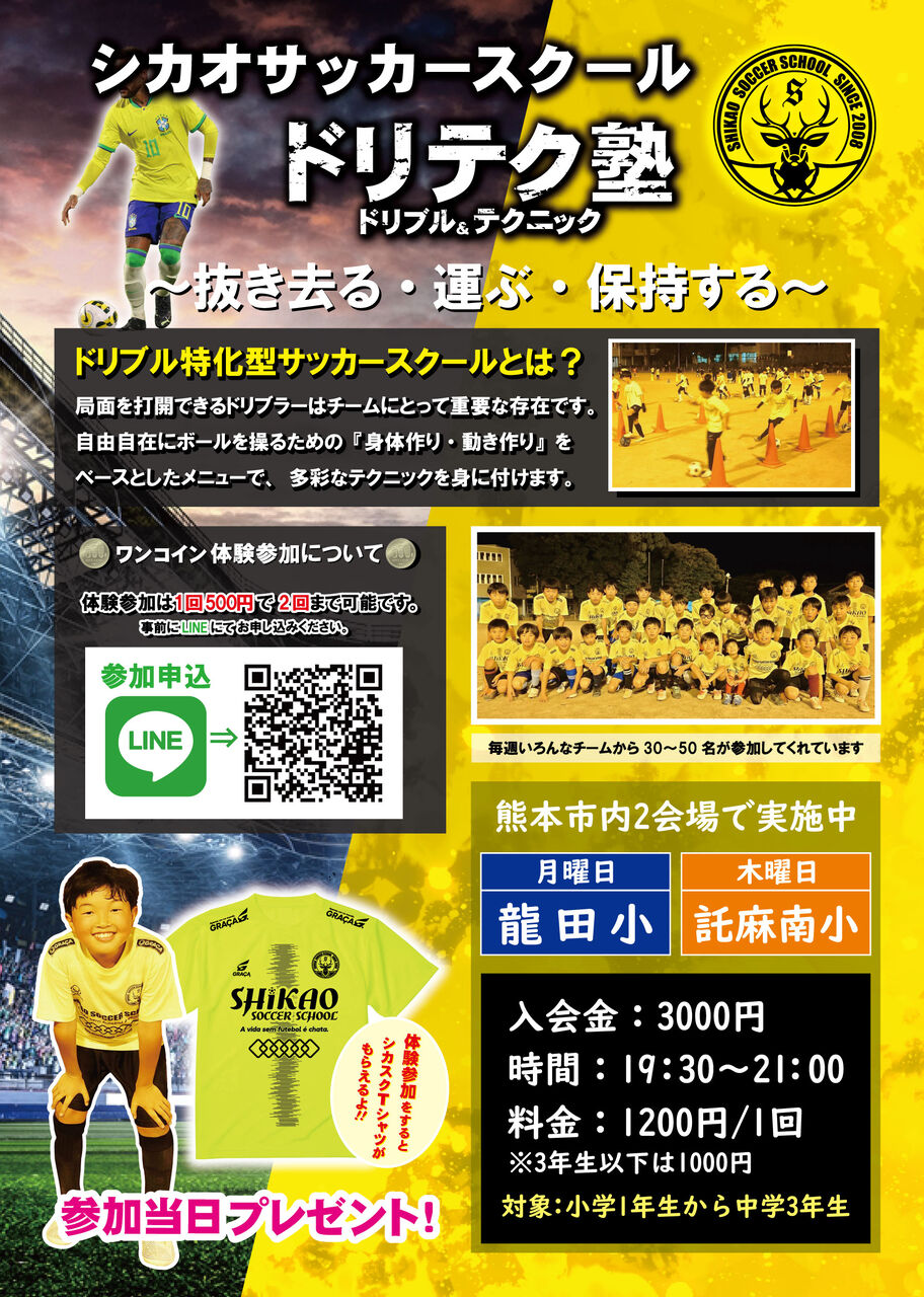 ★熊本 ドリブル テクニック サッカースクール シカオサッカースクール(シカスク)