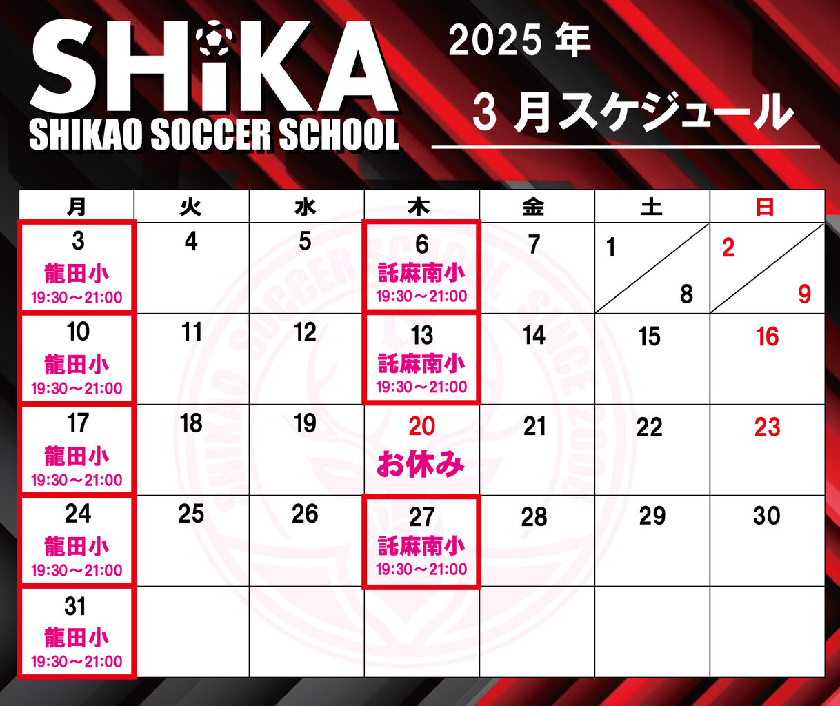 ◎龍田小=毎週月曜日 19:30~21:00